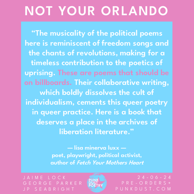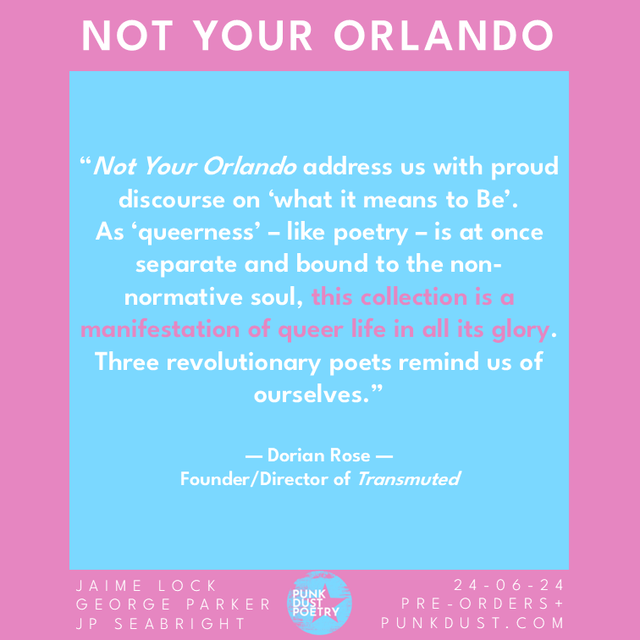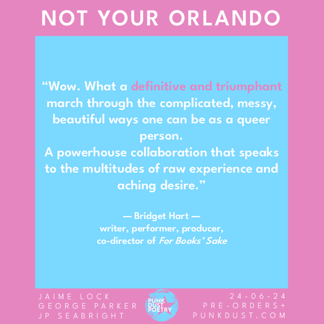 Preorder the Paperback of Not Your Orlando by Jamie Lock, George Parker, and JP Seabright. Free badge and bookmark with every order.